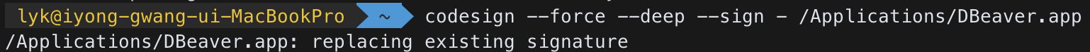 codesign --force --deep --sign - /Applications/์ฑ์ด๋ฆ.app์ ํฐ๋ฏธ๋์ ์คํ ์์ผ ํด๊ฒฐํ๋ค.![]()