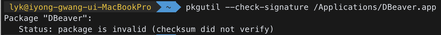 pkutil --check-signature /Application/์ฑ์ด๋ฆ.app์ ํฐ๋ฏธ๋์์ ์คํํด๋ณด์![]()